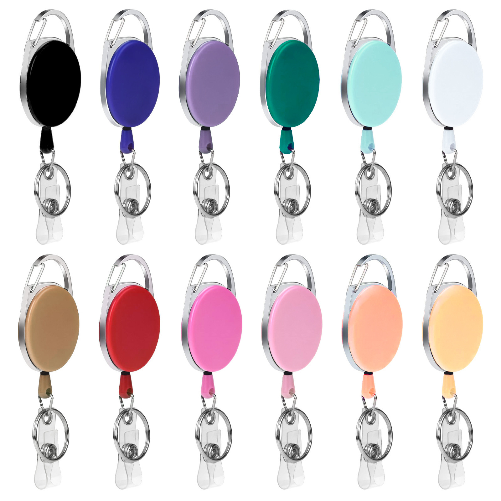 マカロン楕円亜鉛合金の弾力性を強化した純色の伸縮可能な証明書のキーホルダー