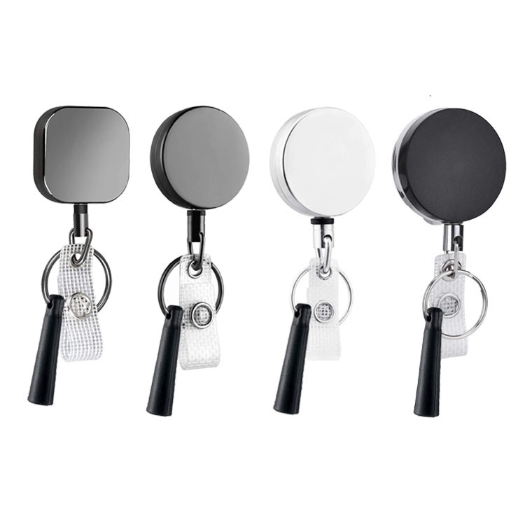 4cm亜鉛合金ガングレー正方形ラウンドメタル伸縮プルアップキーホルダ