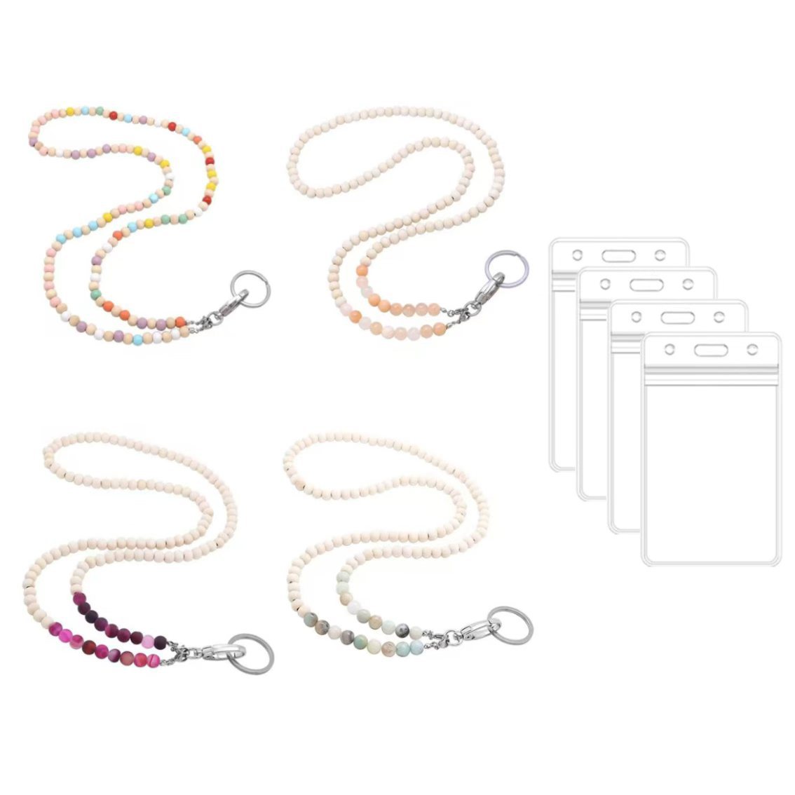 メタルガンアッシュローズゴールドシルバービーズチェーン亜鉛合金伸縮式イージーピックアップバックルイージーピックアップPVC IDセット