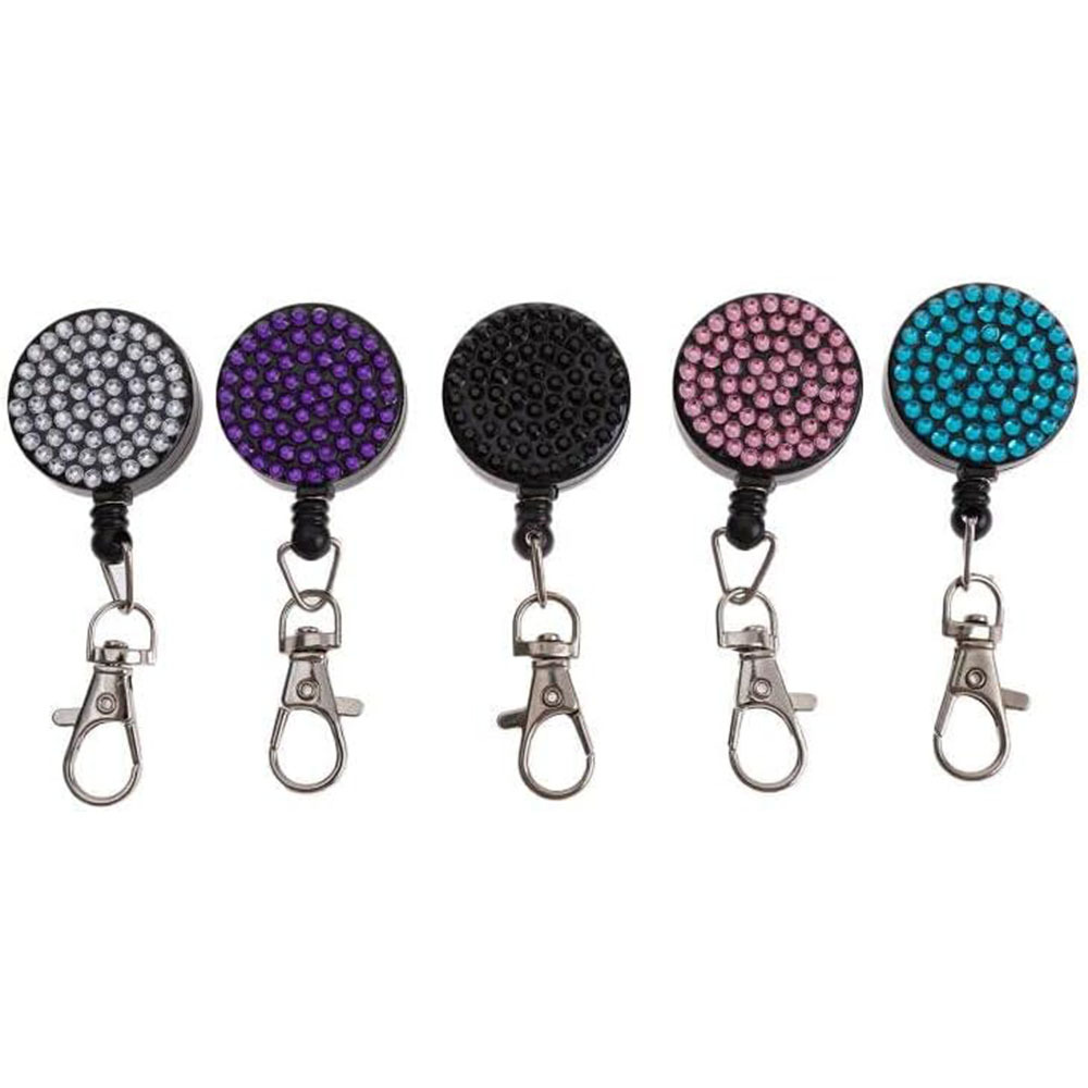 ファッション伸縮可能な水晶首ストラップ、伸縮可能なキラキラバッジクリップ、携帯型ドリルバッジリールクリップ