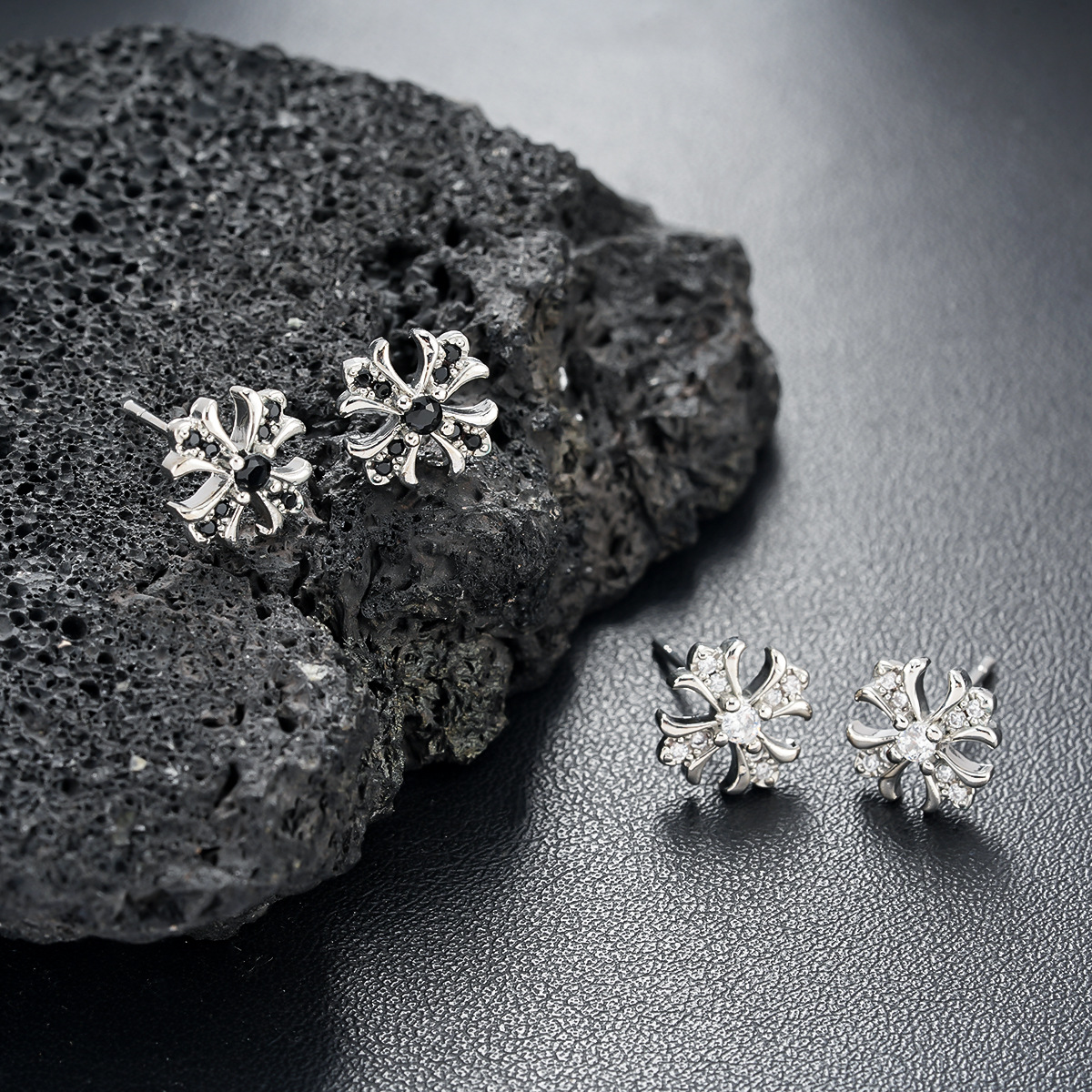 レトロなヒップホップのクロロの十字のジルコンのフルドリルのピアスの男女の個性のinsの冷たい風の小さい大衆の軽い贅沢な耳飾り