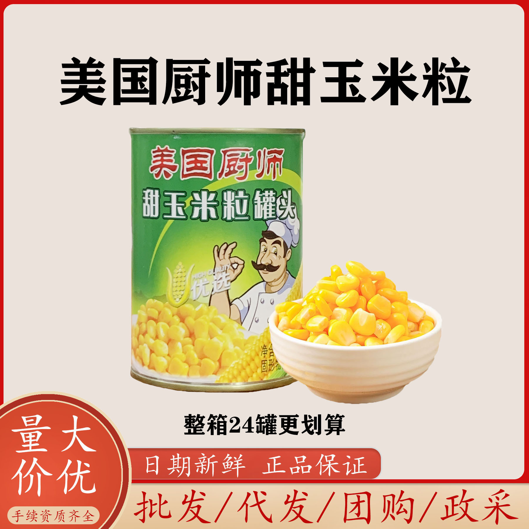 コーン缶詰24缶入りフルボックス シェフのスイートコーン ケータリング用サラダ フィットネス用食事代わり 朝食 インスタント食品 釣り用 すぐに食べられる