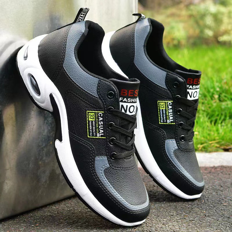卸売り男性靴の新型男性エアマットの皮面ファッション学生のファッション靴の通気性の屋外のレジャーの百合運動の男性靴
