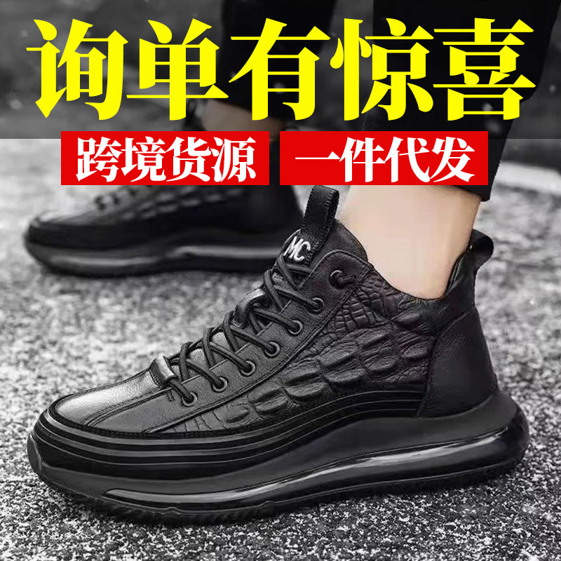 新しいファッションハイトップバスケットボールシューズメンズレザーカジュアルシューズクロスボーダー厚底学生トレーニングスポーツシューズドロップシッピング