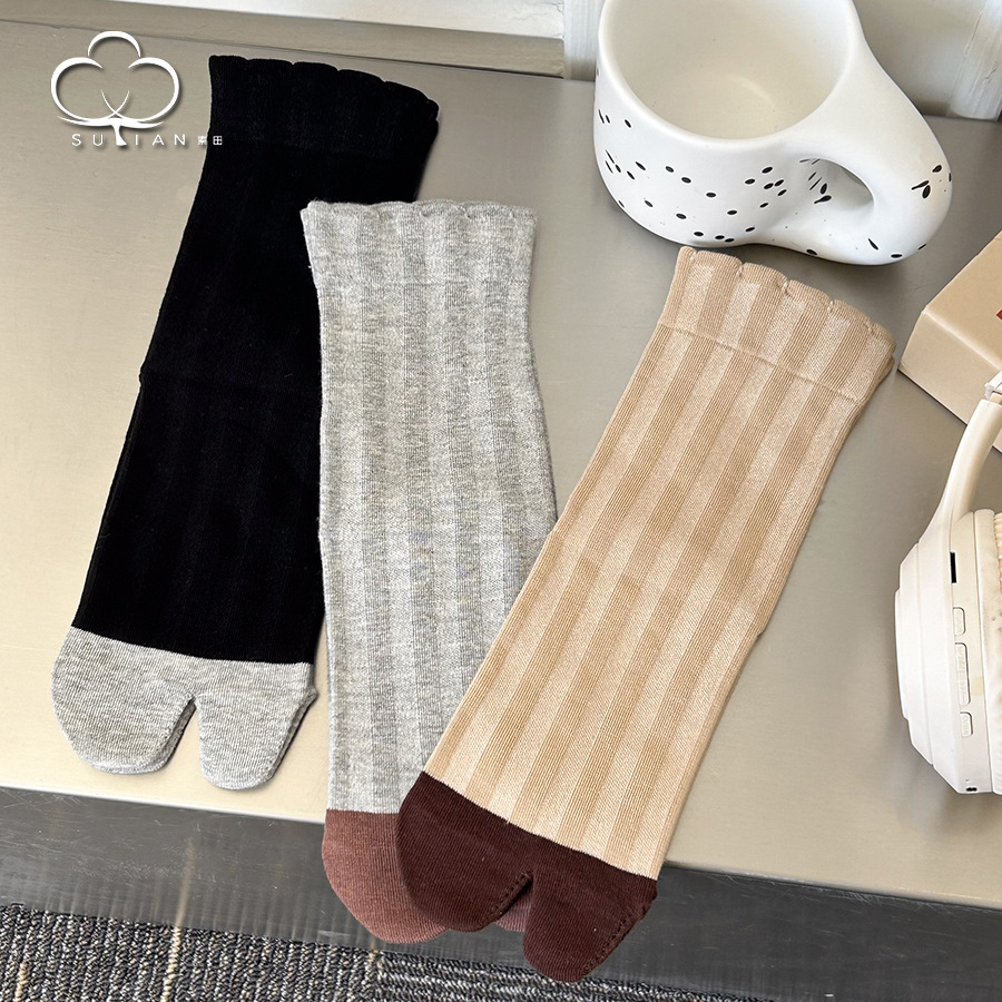 色の二本の指の靴下の子供の指の靴下の親指の足の指の豚の足の靴の羊の蹄の靴下の韓国版のストライプの中で筒の靴下の女性の靴下