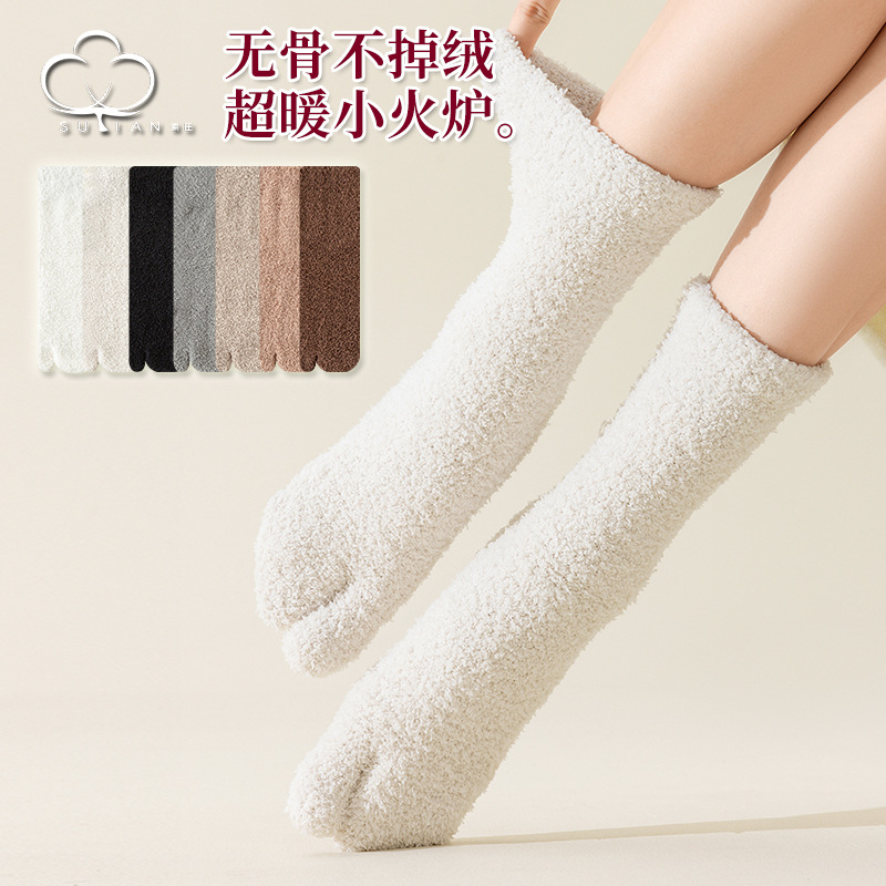 骨のない靴下の子供の二本の指の靴下の冬のサンゴの絨毛の睡眠の靴下のベルベットは毛の指の靴下の女性を落としませんでした。