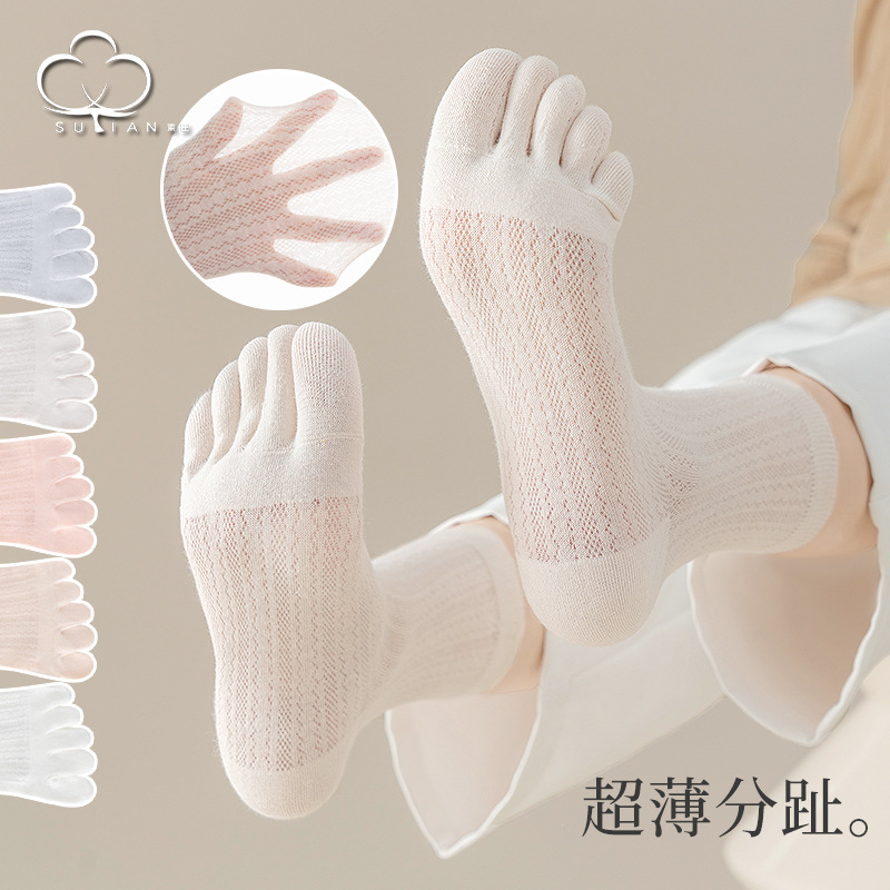 五本指の子供の夏の薄い綿の靴下の網の目の指の靴下insの潮の通気性は汗を吸います。