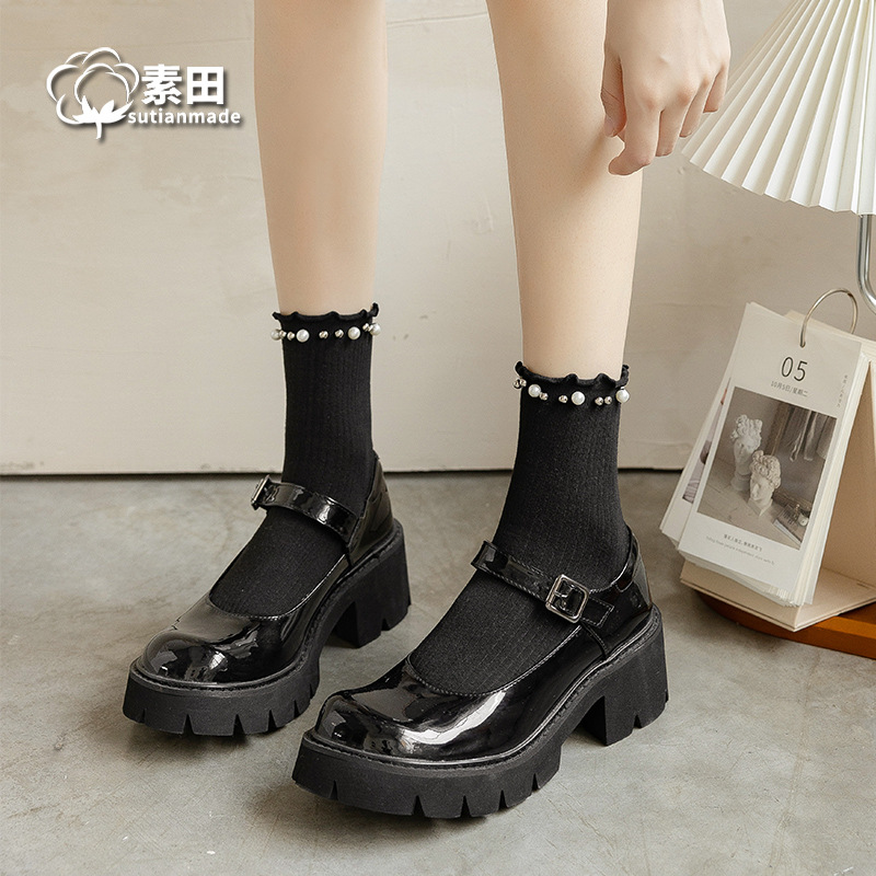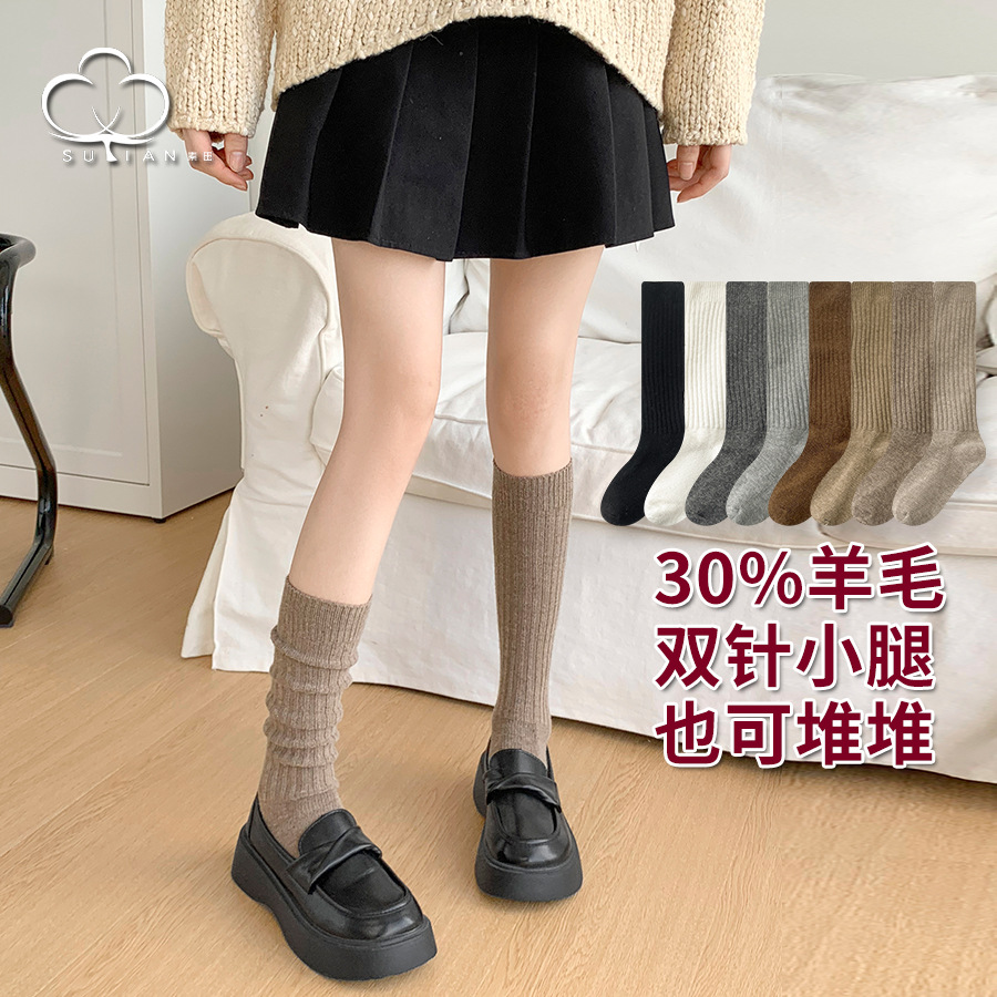 30% ウール靴下子供ストッキング冬保温ふくらはぎ靴下女性縦条ストッキング純色双針スタッキングソックス