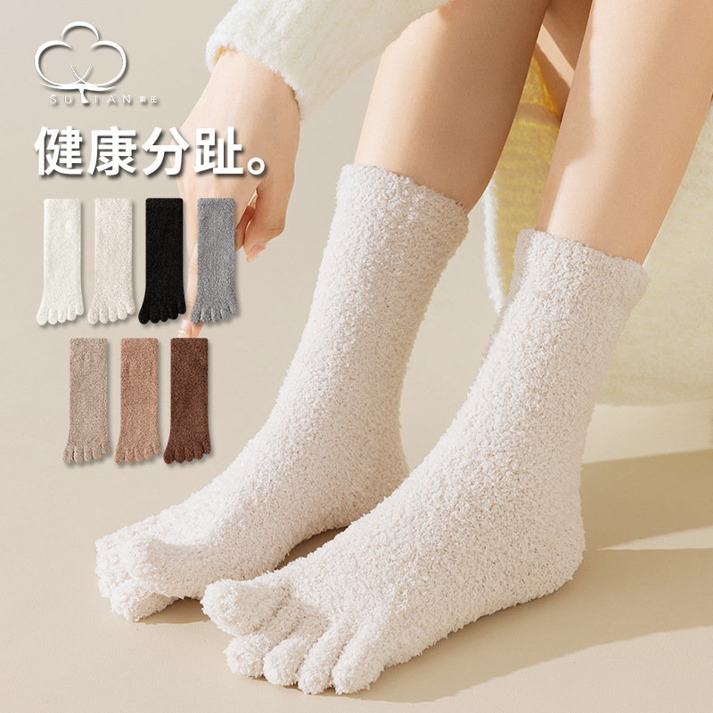 サンゴの毛の靴下の女性の冬のベルベットの厚い毛のふわふわした五指の靴下の家の産後の保温は足の指の睡眠の靴下を分けます。