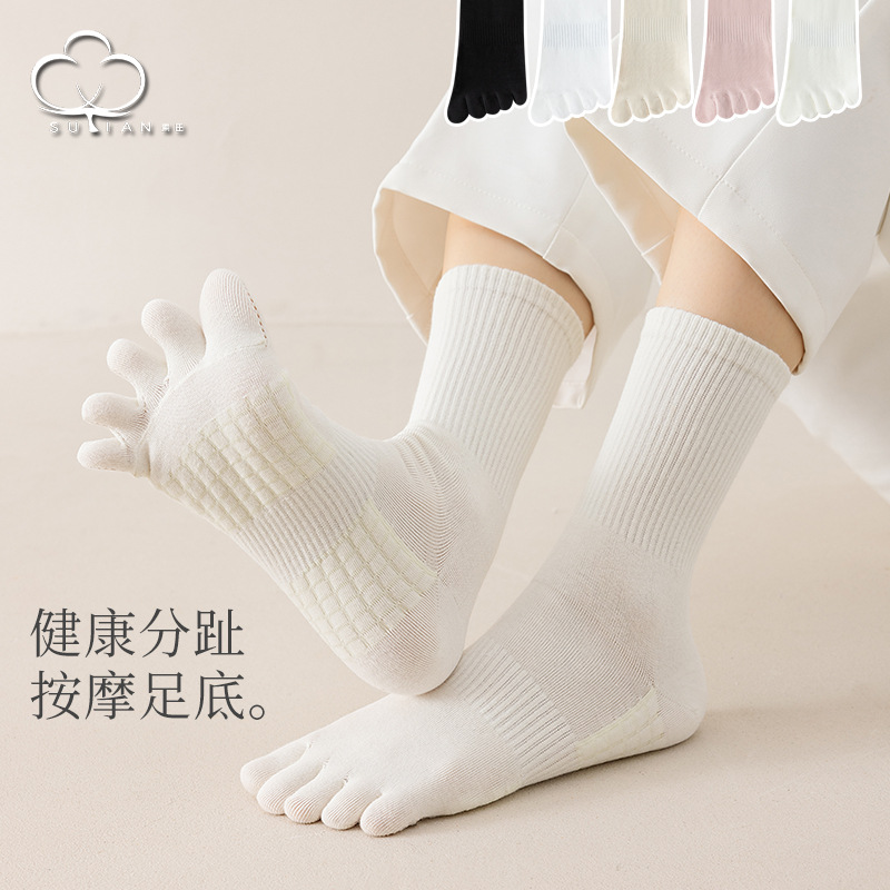 ベルベット五本指靴下男性靴下中筒靴下夏の薄い格子足指五本指防臭男性靴下潮