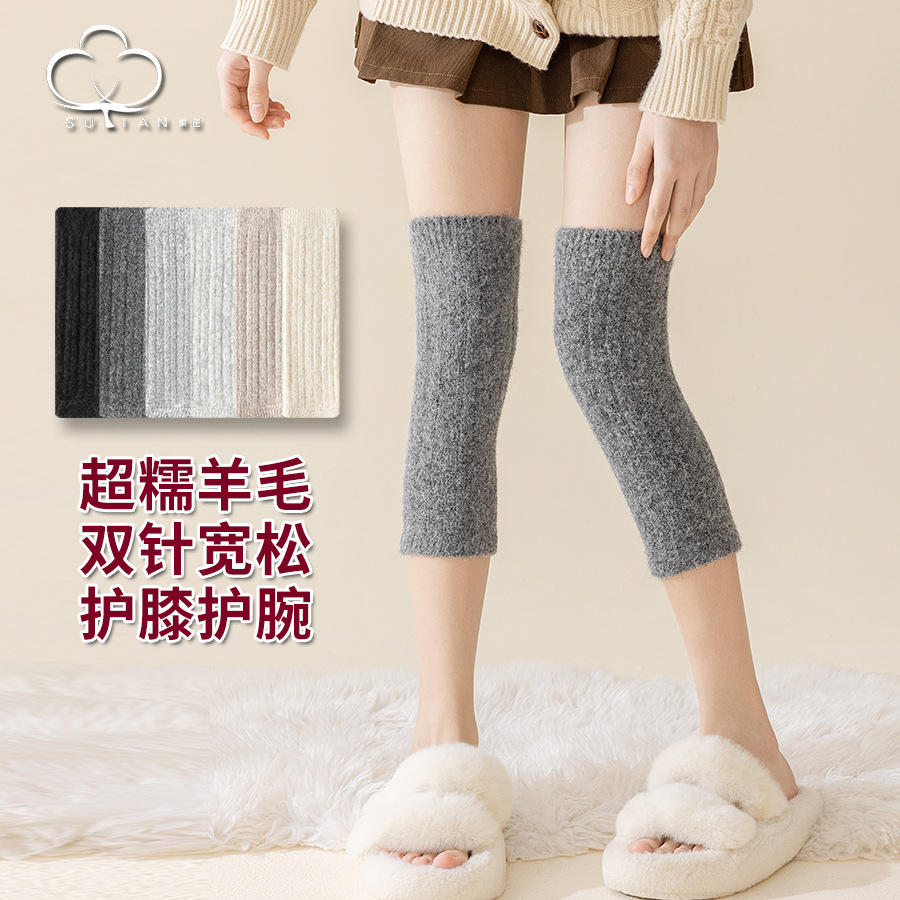 ウール膝保護女性関節保温脚カバー秋冬老寒脚靴下カバー加毛半縦条女性靴下下腿カバー
