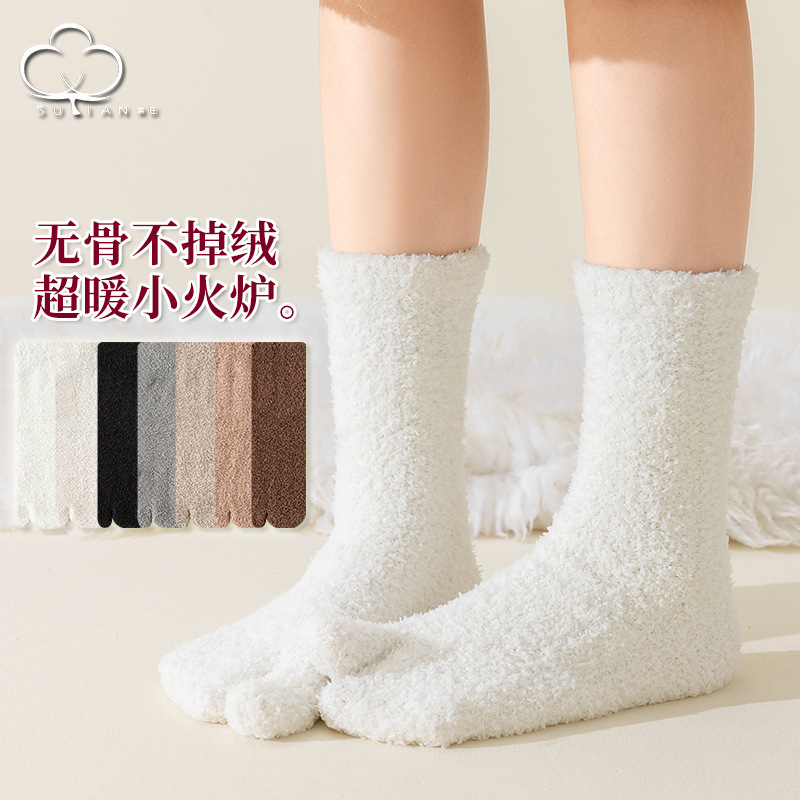 骨のないサンゴの毛の靴下の女性の冬のベルベットの睡眠の靴下の女性の厚い保温の2本の指の指の靴下の月子の靴下の潮