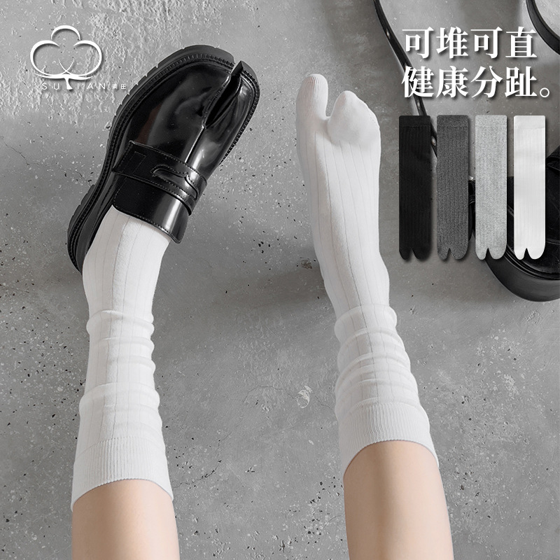 白い二本の指の靴下の子供のふくらはぎの靴下の四季の女子学生は靴下の親指を積み上げて豚の足の靴の羊の蹄の長い筒のストッキングを分けます。
