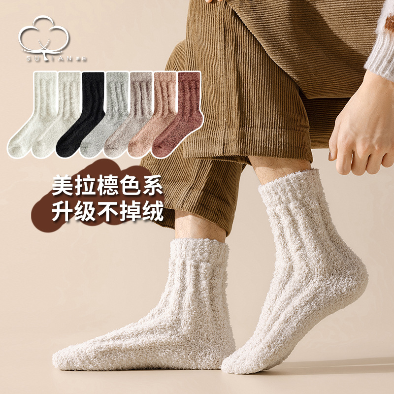 サンゴの毛の靴下の男性の中の筒の靴下の秋の冬のベルベットの厚い保温の美ラードの色のぬいぐるみの靴下の秋冬の男