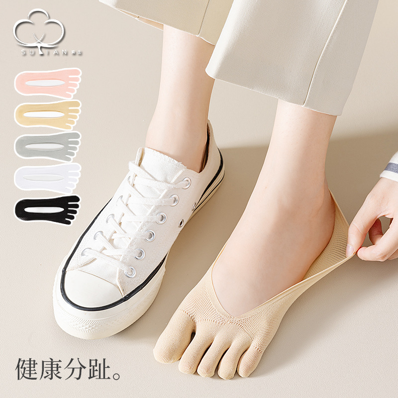 5本指の靴下の女性の船の靴下の夏の薄いモデルのビロードのメッシュの指の靴下の通気性の吸汗の浅い口の滑り止めの隠れた靴下