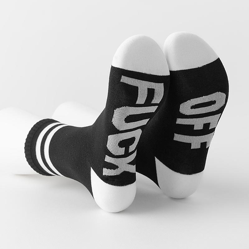 足の裏のアルファベットの靴下の潮流のカップルの靴下の街頭の双棒の女性の靴下の通気性の快適な男性の靴下の欧米風は汗の綿の靴下を吸います。