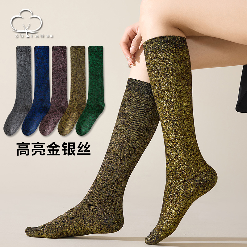 ふくらはぎの靴下の子供のストッキングの金銀のファッションの女性の靴下