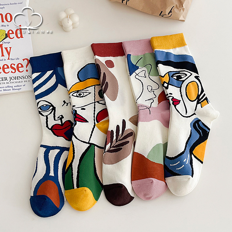 五本指の靴下の子供の春と秋の中筒綿の靴下ins潮の愛の分指の女性の靴下の通気性は汗の秋冬のストッキングを吸います。