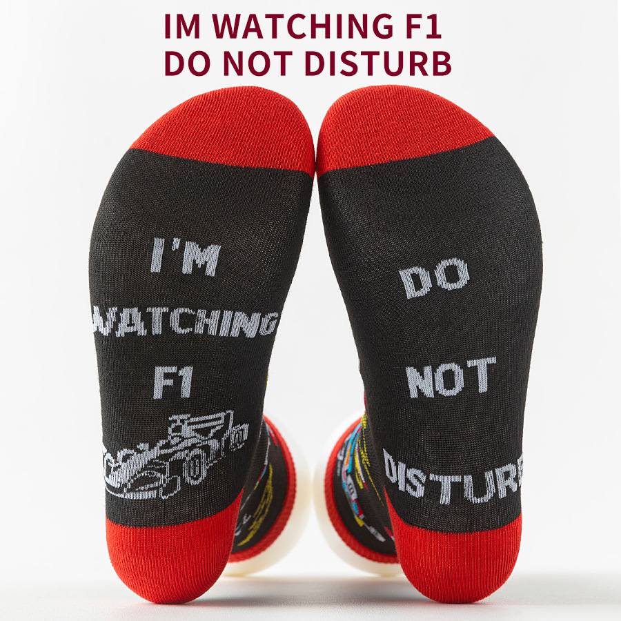 靴下の底のアルファベットのファッションの靴下のカップルの金は国境を越えてアマゾンの欧米のf 1レースの街頭の風の中で筒の靴下の赤い青いのが爆発します。