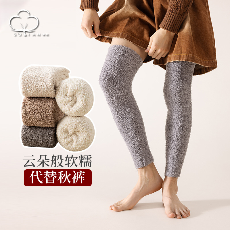 膝を通す子供の長筒秋の冬にベルベットを厚くしたサンゴのベルベットの通気性が汗を吸う冬の保温高筒太ももの靴下