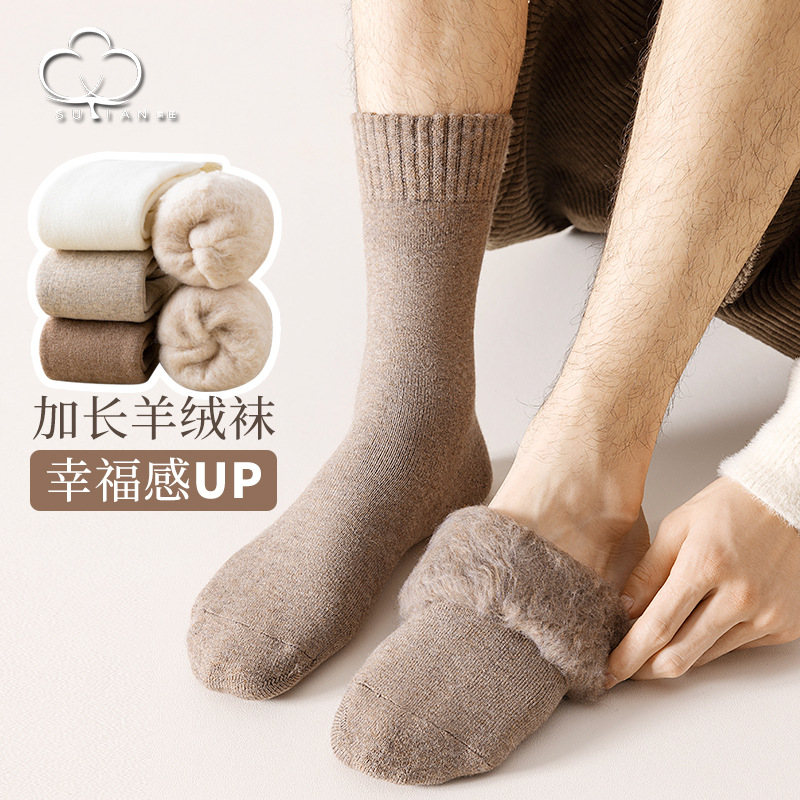 75グラムの靴下の男性の中の筒の靴下の秋冬のベルベットの厚い保温のカシミヤの通気の純色の男性の冬のストッキング