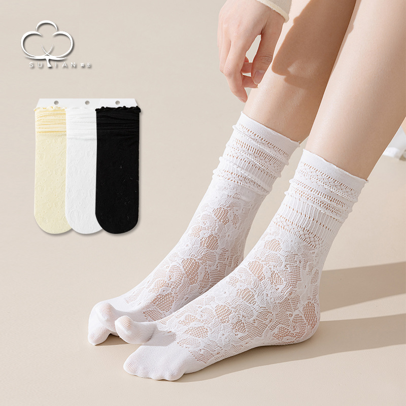 二本の指の靴下の子供の夏の薄いタイプの女性の靴下の透かし彫りのレースの通気性の親指の指の靴下の日本のかわいい長い筒のストッキング