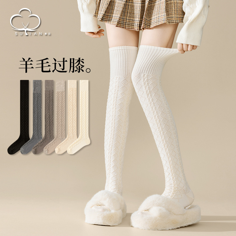 ウールの膝を越えた靴下秋冬タイプの厚い保温長筒日系jk下腿靴下麻花百合高筒長脚ストッキング