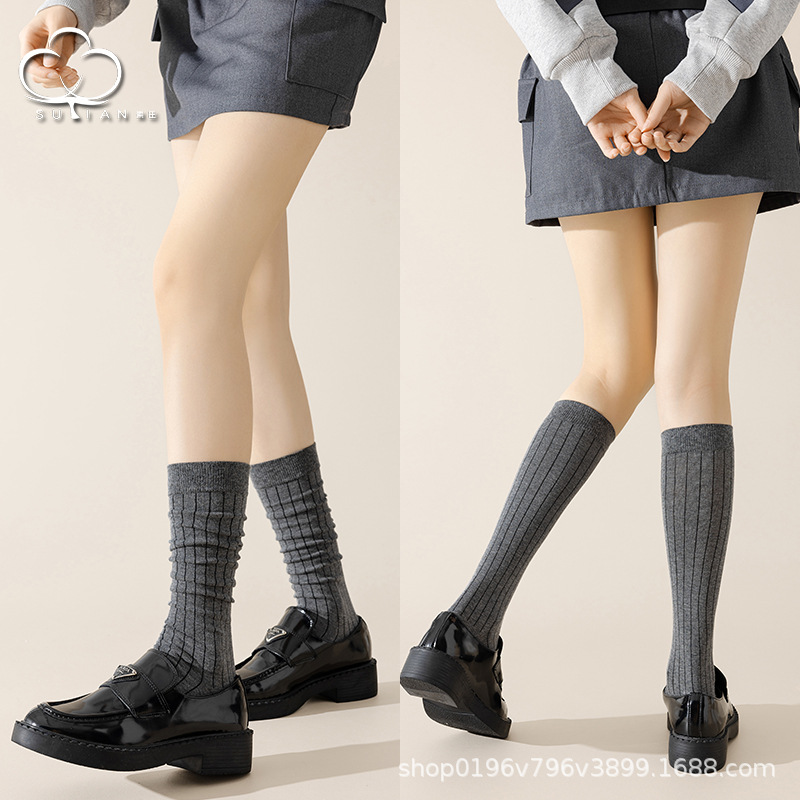 ふくらはぎ靴下子供秋冬ストッキング日本系ins潮ストッキング女子学生縦条と小革靴春と秋の薄い靴下
