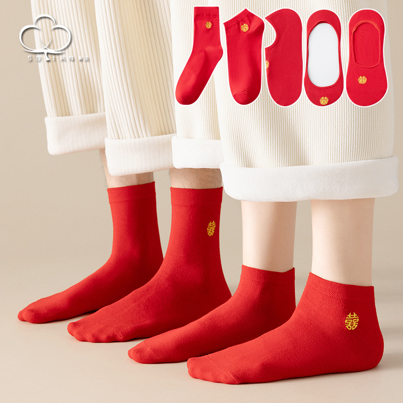 本命年赤い靴下男女中筒綿靴下お祝いカップル結婚しています。