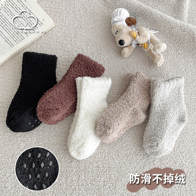 サンゴの子供の靴下の中の筒の秋冬のベルベットの厚い保温の男女の子供の点のゴムの滑り止めの床の赤ちゃんのストッキング