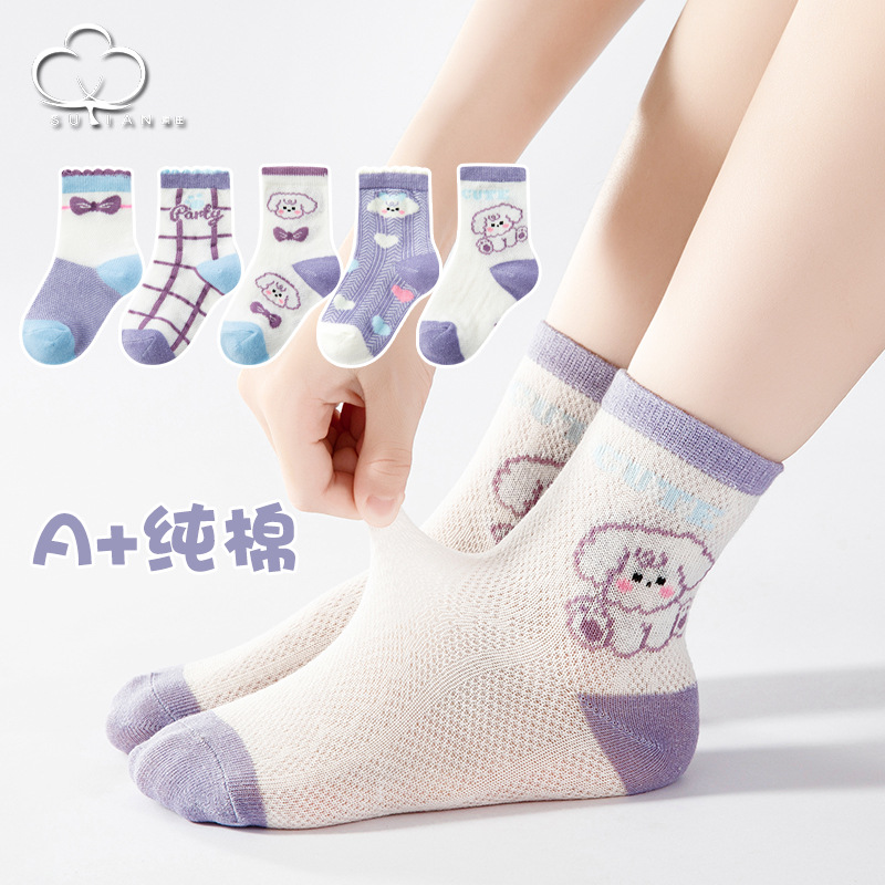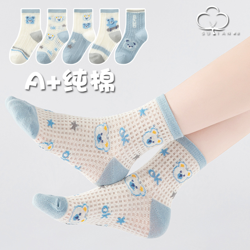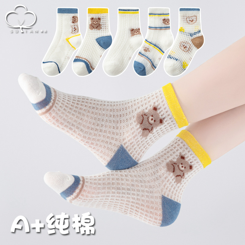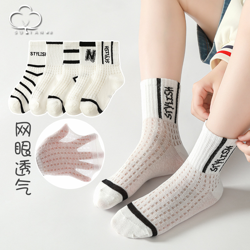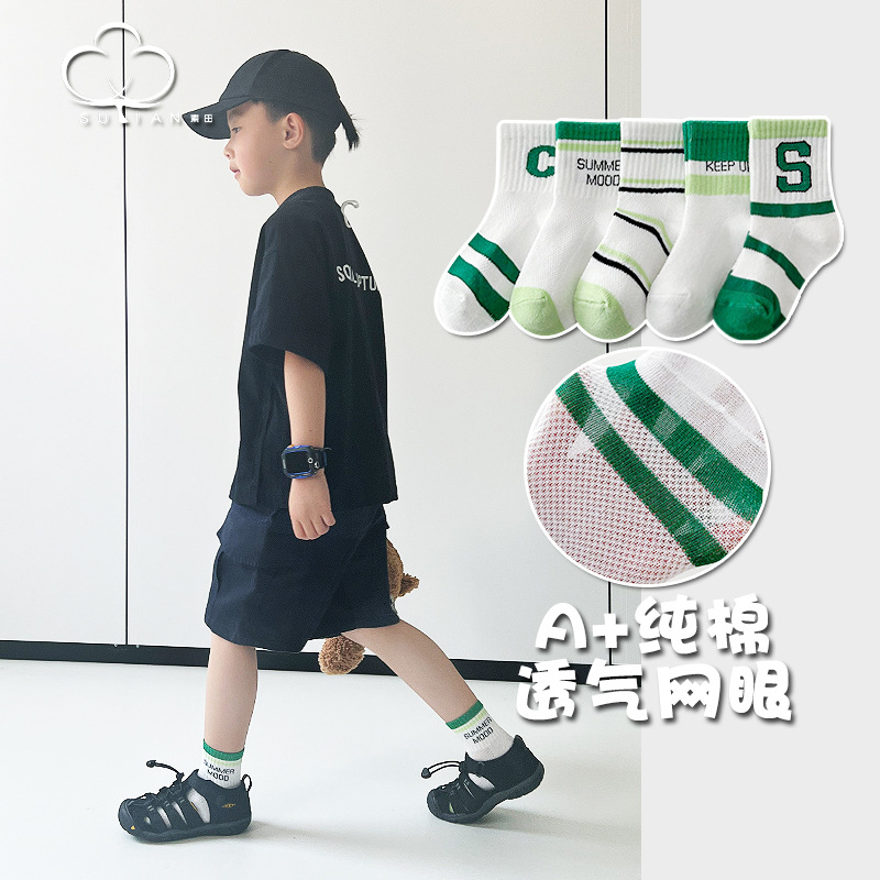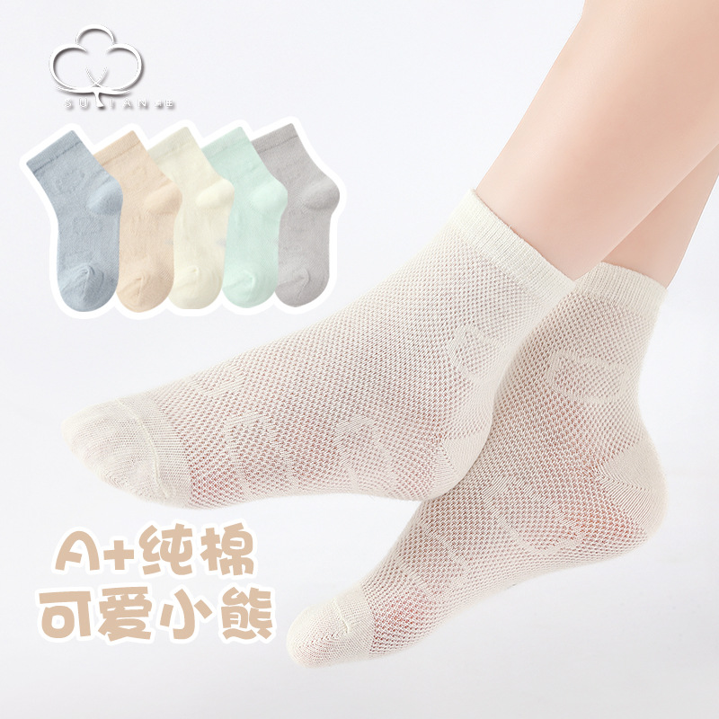 子供用靴下夏の薄いメッシュソックス中筒男女子供通気吸汗夏赤ちゃん綿靴下