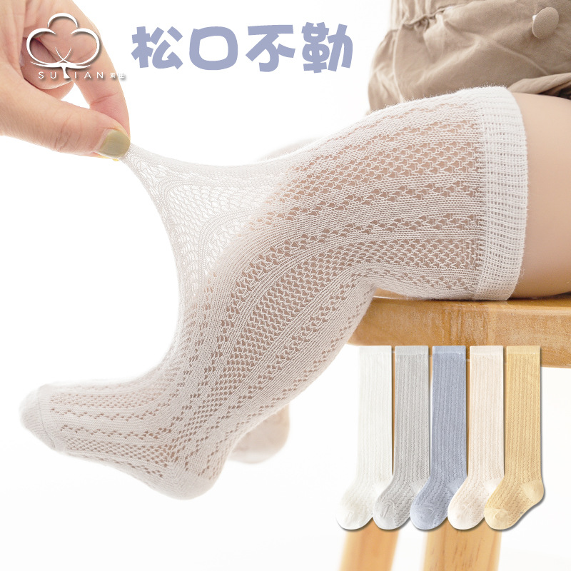 女の子の靴下の夏の薄いタイプの綿の靴下の中で靴下の子供の透かし彫りのネットの目の夏の男女の赤ちゃんの長い靴下