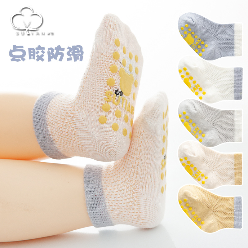 赤ちゃんの床の靴下の夏の薄いタイプの綿の靴下の網の目の靴下のシリコンの滑り止めの子供の靴下の赤ちゃんの学歩の靴下