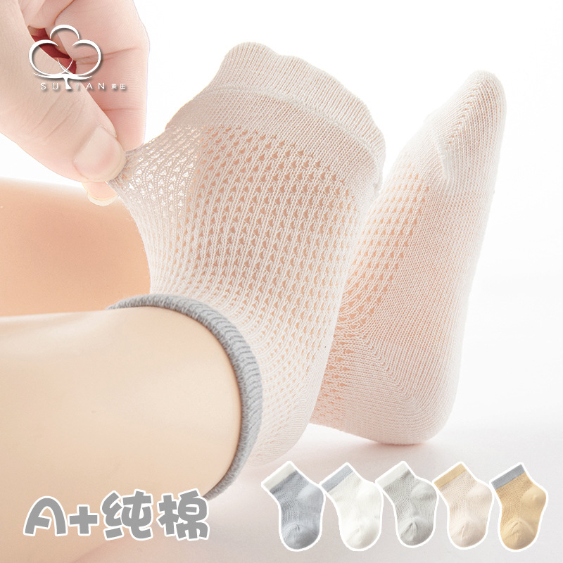 子供の靴下の夏の薄いタイプの綿の靴下の0-3歳の赤ちゃんの靴下の網の目の短い靴下の男女の子供の新生児の赤ちゃんの靴下