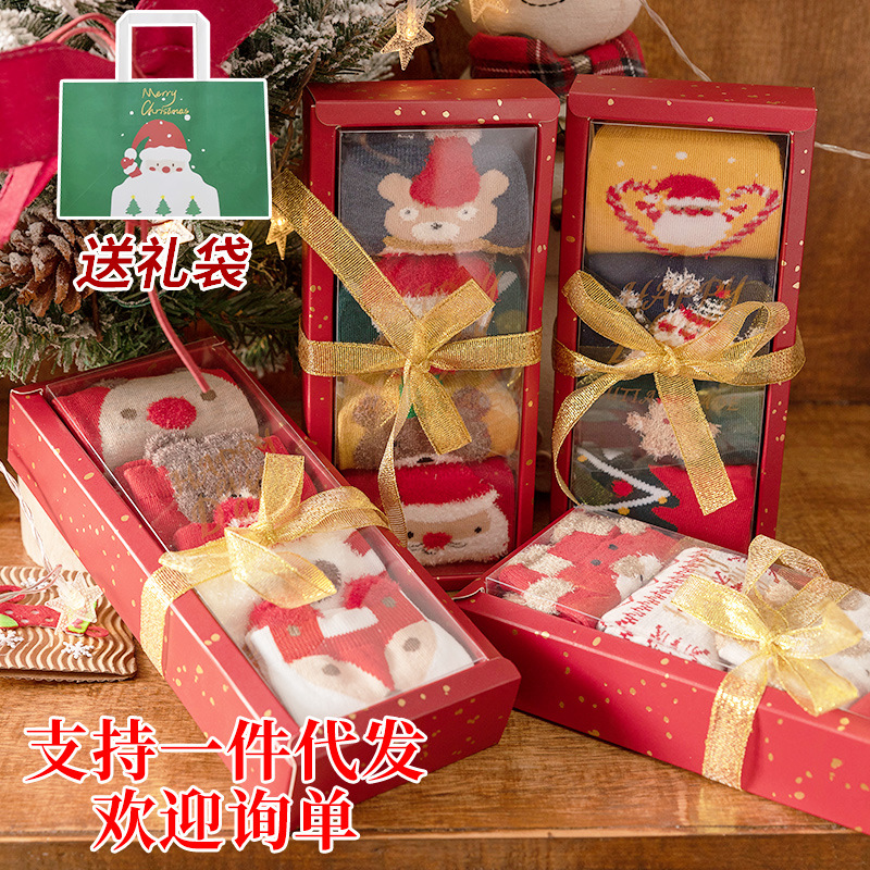 クリスマスの靴下の中のストッキングの字の女性の秋冬の厚い保温の綿の靴下の男性のクリスマスのプレゼントの箱のストッキングの冬