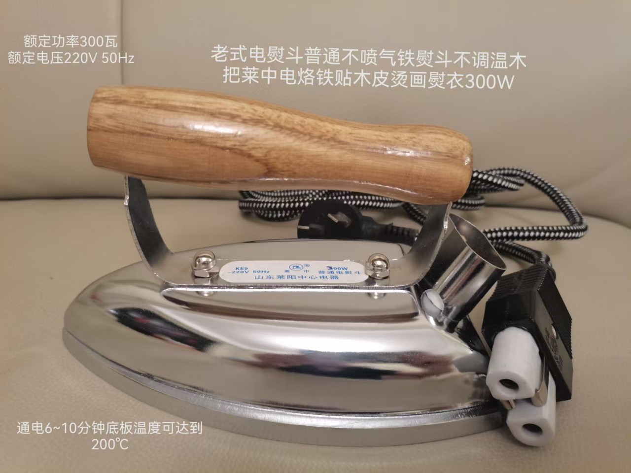 昔ながらの電気アイロン、ノーノンスプレーアイロン、温度調節なしの木製ハンドル、ライズ中電気はんだごて、ウッドベニヤ熱転写アイロン
