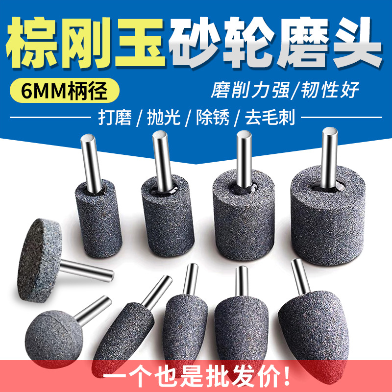 6 ミリメートルハンドルブラウンコランダムセラミック砥石円筒弾丸金属研削と研磨小型電動グラインダー電動研削ヘッド