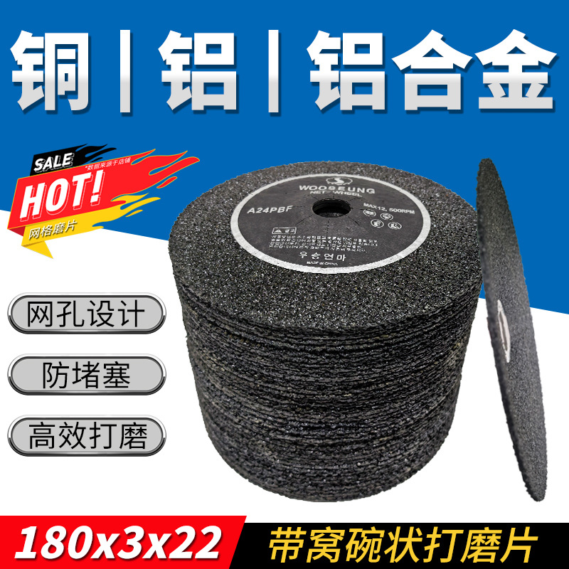 アルミ研削ディスク、アルミ合金アングル研削ディスク、グリッド研削ディスク、180*6*22mm、ノンブロック、造船用樹脂砥石ディスク
