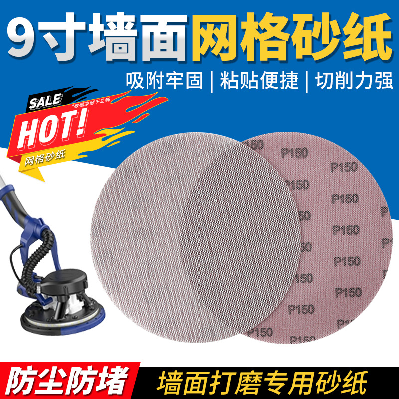 9inch グリッドサンドペーパーラテックスペイント壁パテ研削アーティファクトラウンド自己粘着植毛シートグラインダーサンドペーパー