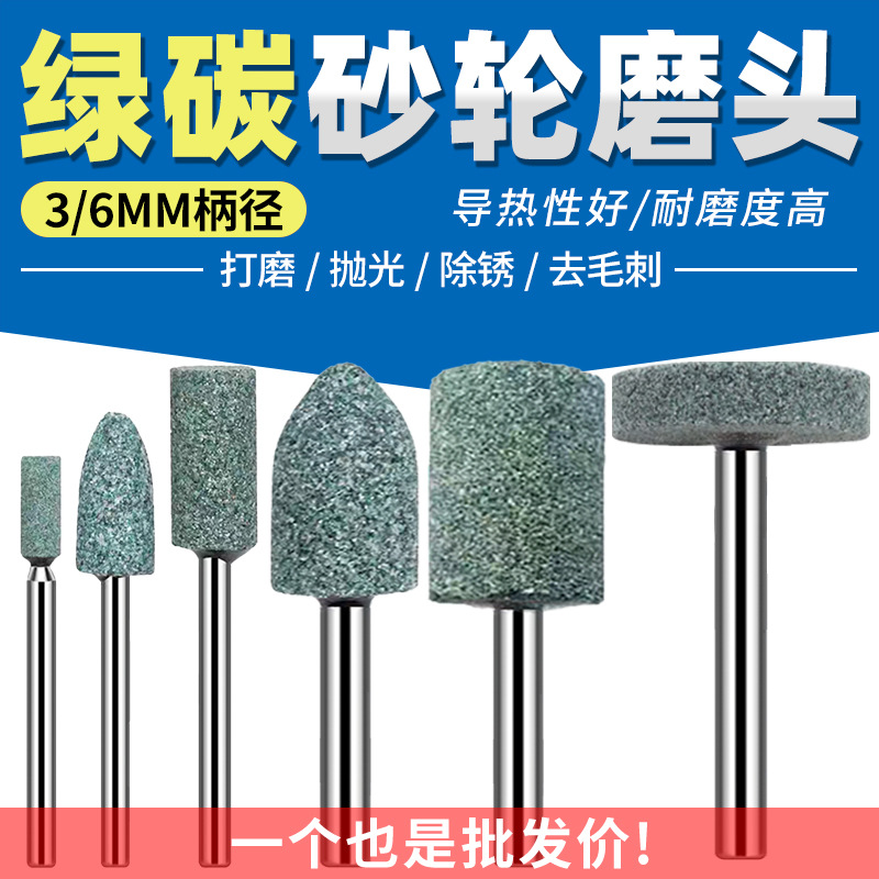 3/6MM柄グリーンカーボン砥石ヘッド円筒弾丸T型グリーン炭化ケイ素砥石ヘッド研磨セラミック砥石ヘッド