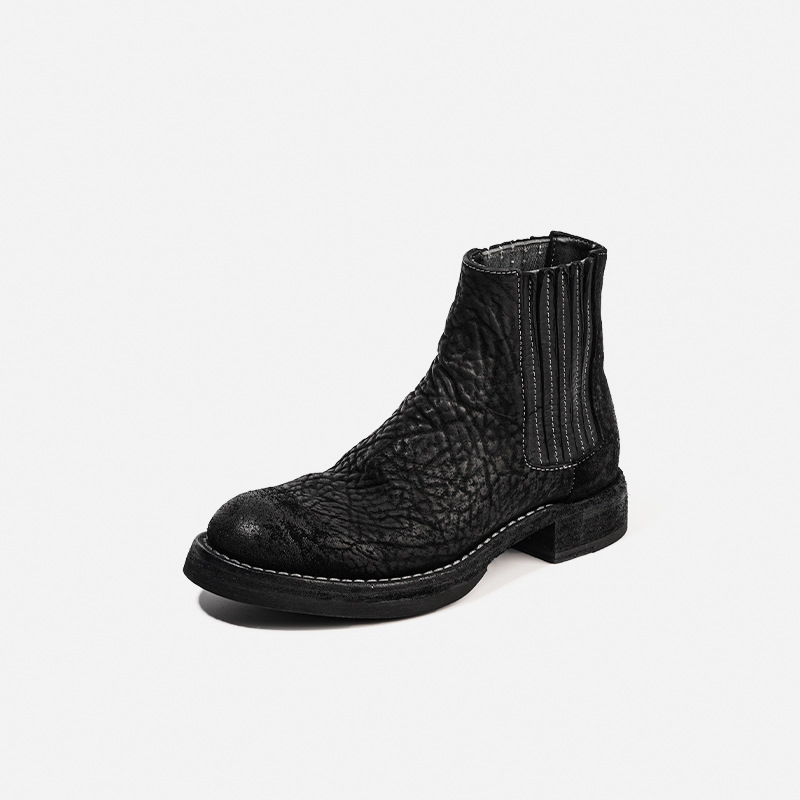 工場直売の代発高級縮紋馬尻皮チェルシーブーツ手作りの特異なファッション男性ブーツ