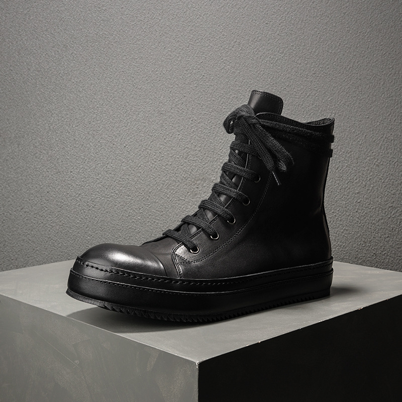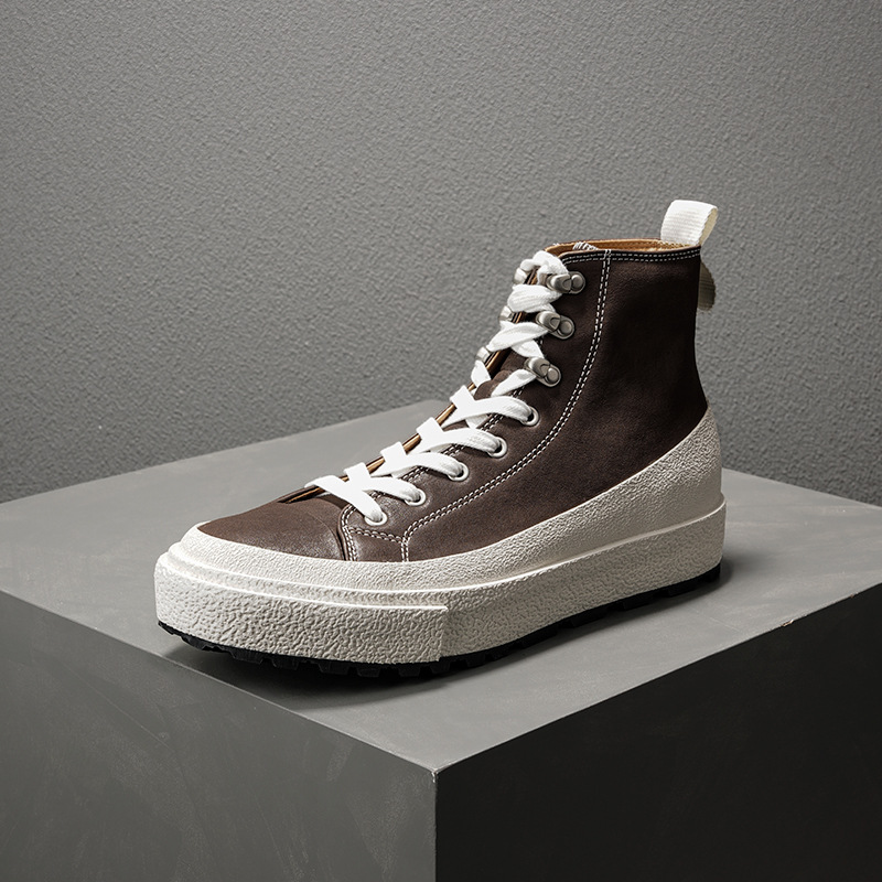 工場直売で滑り止め耐摩耗性馬皮高組板靴の典型的な白黒色合わせ男性靴