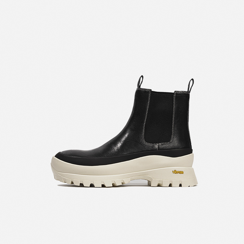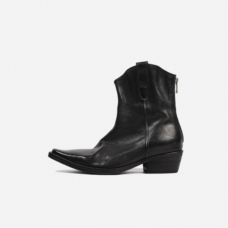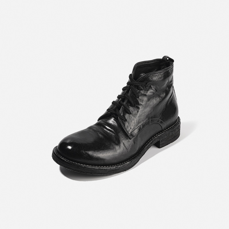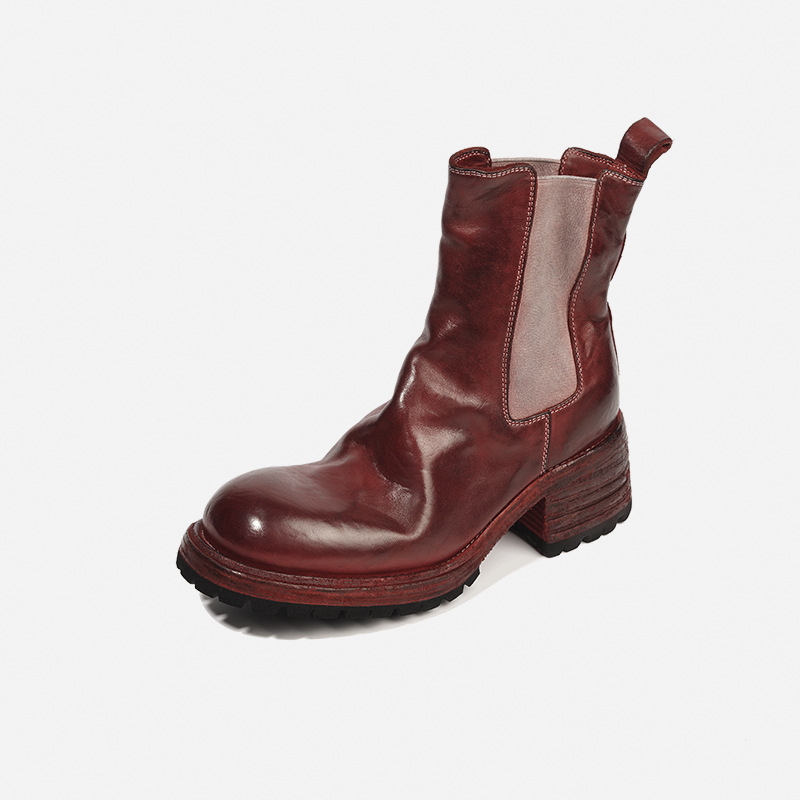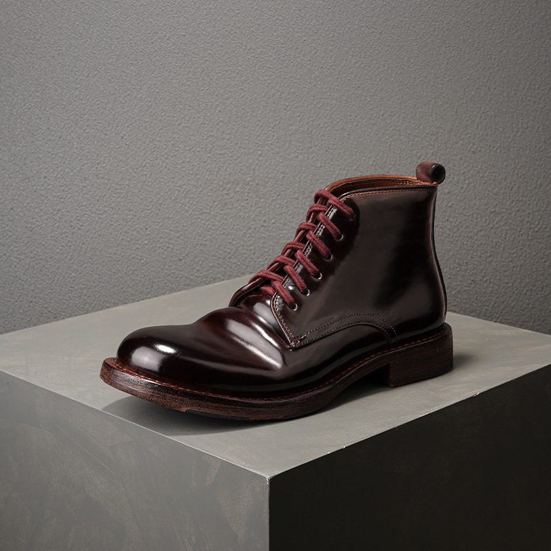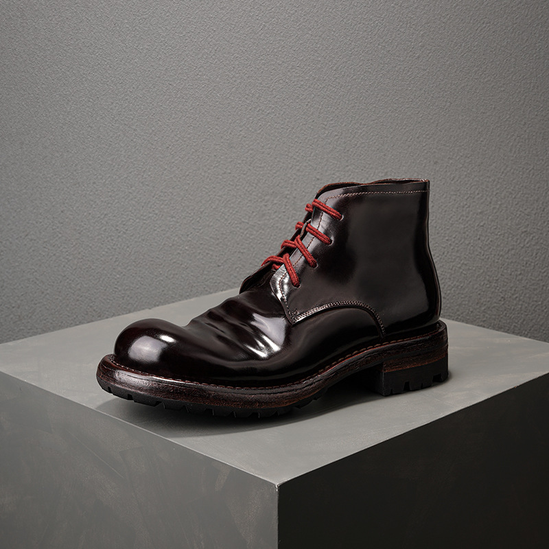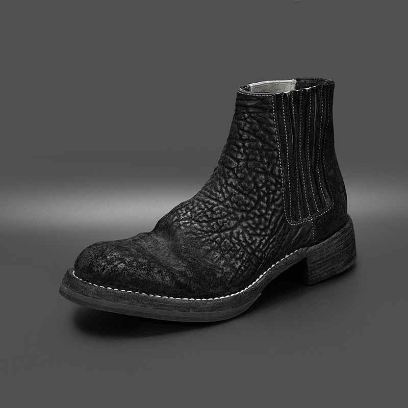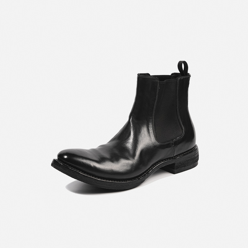 工場直売でイタリアの馬尻皮チェルシーブーツのサイドファスナーが軽くて高級感のあるショートブーツです。