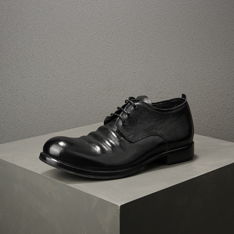 工場直売の高級水洗いラクダの皮の男性の先の皮の靴の暗黒の前衛の手は特異な呪術師の靴を固めます。