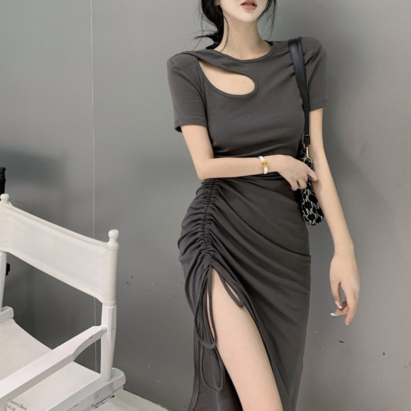 泡袖ギャルのしわのワンピースの女性2023年の夏服のお姉さんの方の襟の気質の短い金は腰の蓬のスカートを収めます。