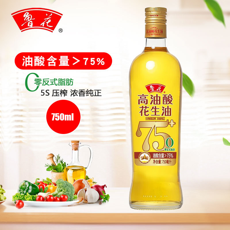 23年新品魯花高オレイン酸落花生油750mlガラス瓶入り物理プレス食用油食糧炒め料理