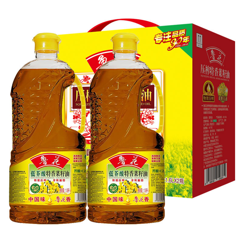 魯花低芥酸特香菜種油圧搾非遺伝子組換え特香菜種油1.6l * 2バレルギフトボックス