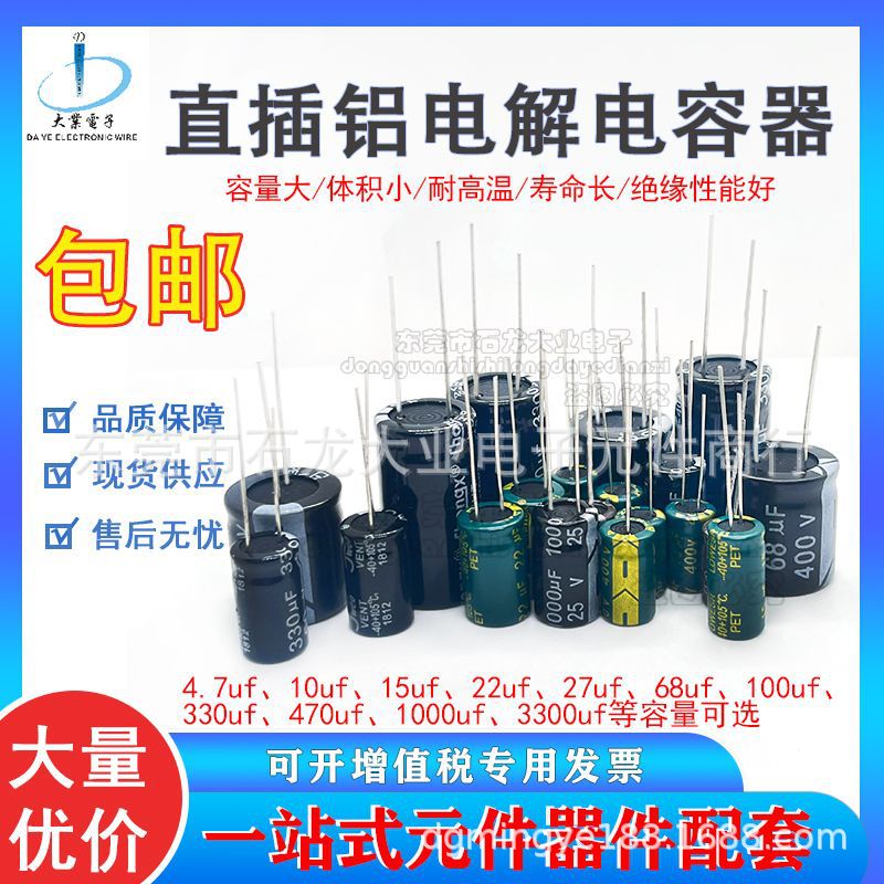 プラグイン電解コンデンサ4.7uf 220uf1000uf 10v 16v 25v 35v 50v 400v常用