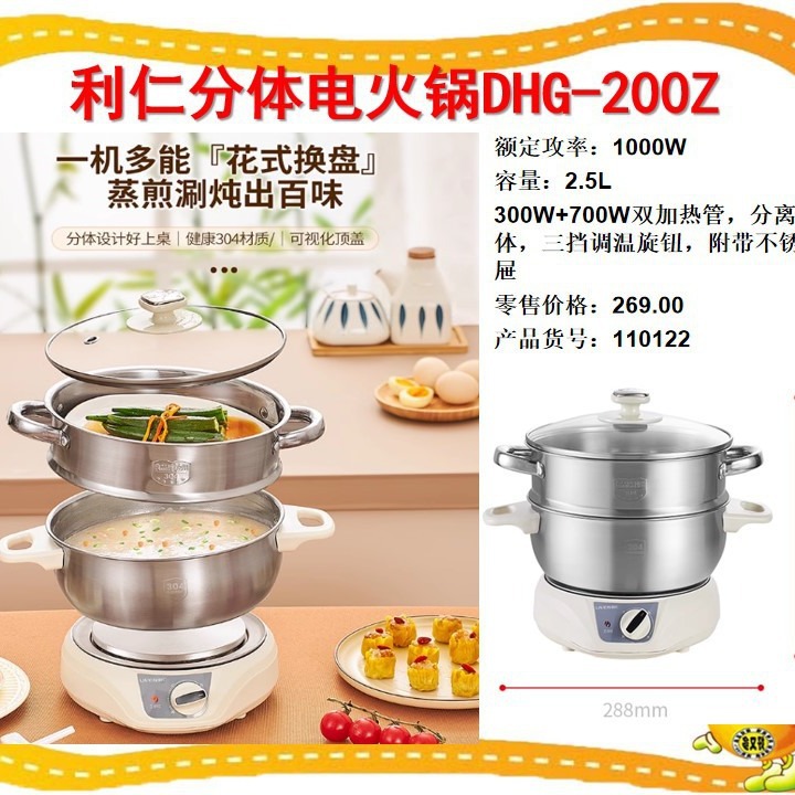 利仁分体寮電熱鍋電気鍋ミニ多機能学生電気煮鍋家庭用304ステンレス鍋