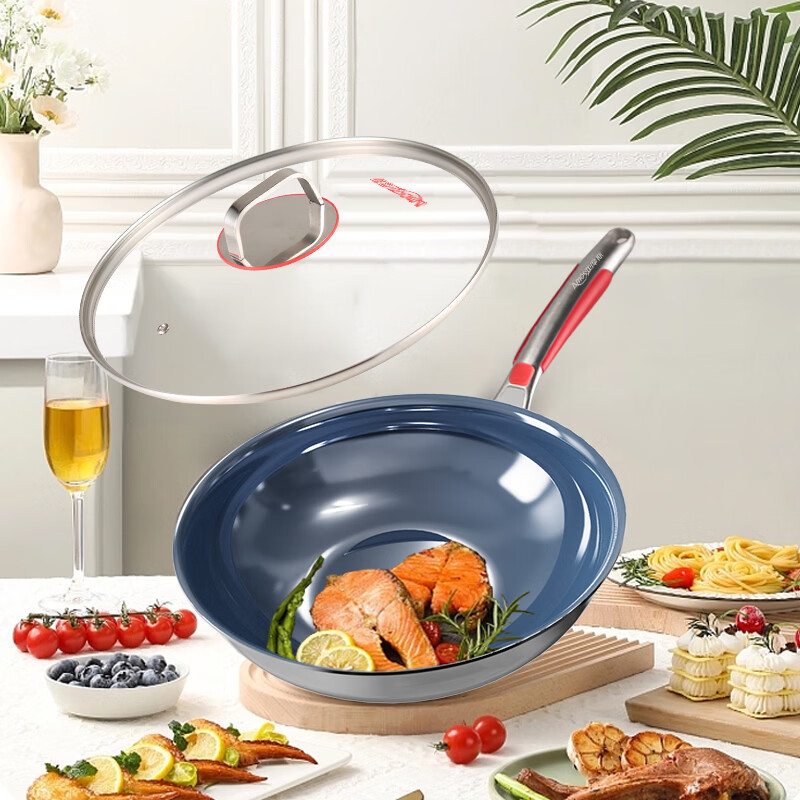 アモスAS-CG328T純チタン炒め鍋0コーティング炒め鍋ガスコンロ鍋平底電磁ストーブ共通鍋